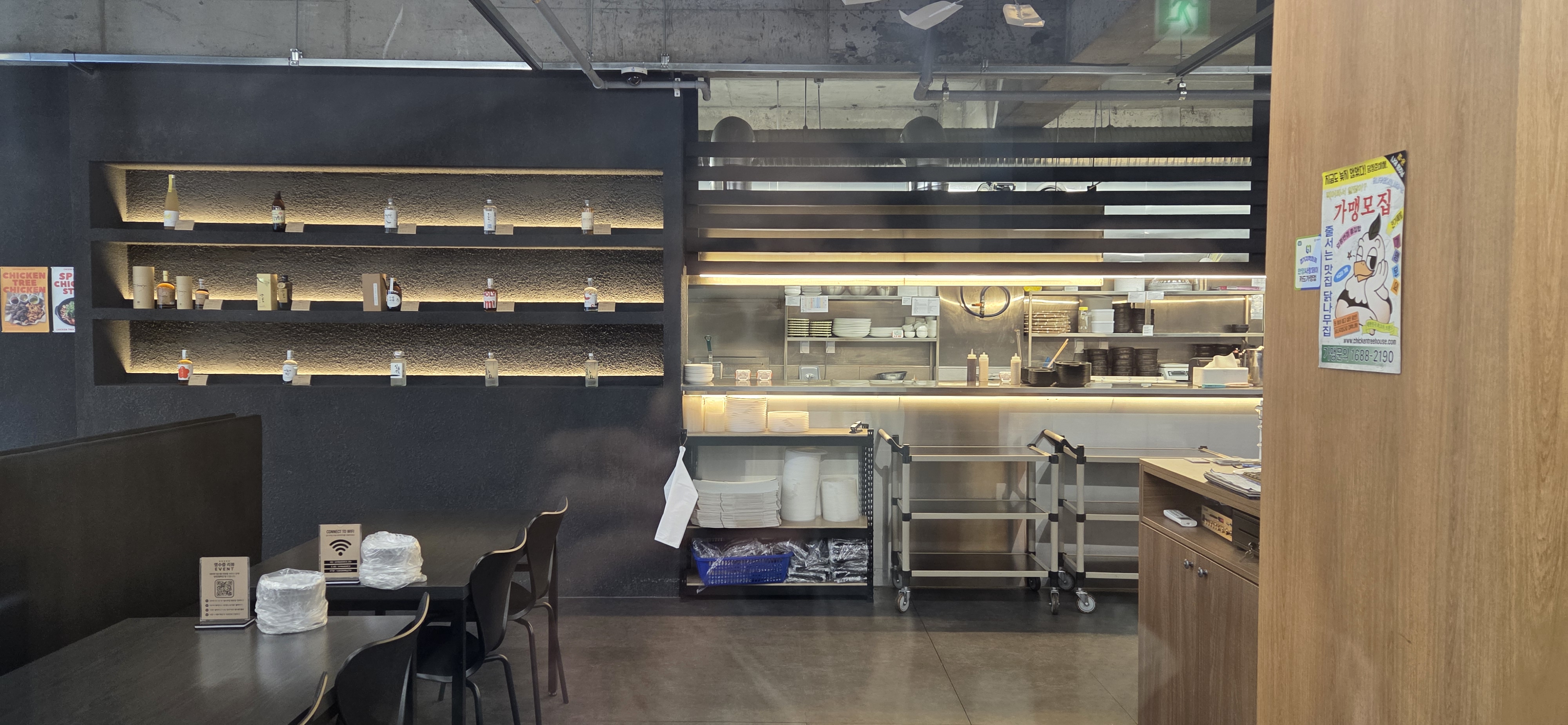 막상 문을 열고 들어가보니 깔끔했습니다. 넓직한 매장에 오픈 키친, 모던한 분위기에 누구든 편히 식사할수 있을 것 같았어요.